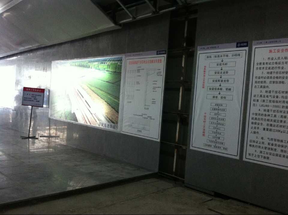 本次观摩会共设6个观摩点:第一观摩点:楼梯踏步和栏杆;第二观摩点:钢结构和涂装(钢网架施工、高空拼装施工、金属屋面安装、防火涂料施工);第三观摩点:站台铺装及雨棚;第四观摩点:地道干挂石材及装饰装修;第五观摩点:出站厅装饰装修和设备安装(铝条板吊顶及花岗岩铺装、电气安装);第六观摩点:外墙装饰装修、玻璃幕墙和门厅立柱。观摩过程中各级领导及各参建单位代表听取了中交二公局现场对陇南车站样板工程施工工序、工艺及控制要点的介绍。各有关领导及参见单位代表对此次观摩工程施工、现场安全文明施工及工程质量情况给予了高度评价与肯定。