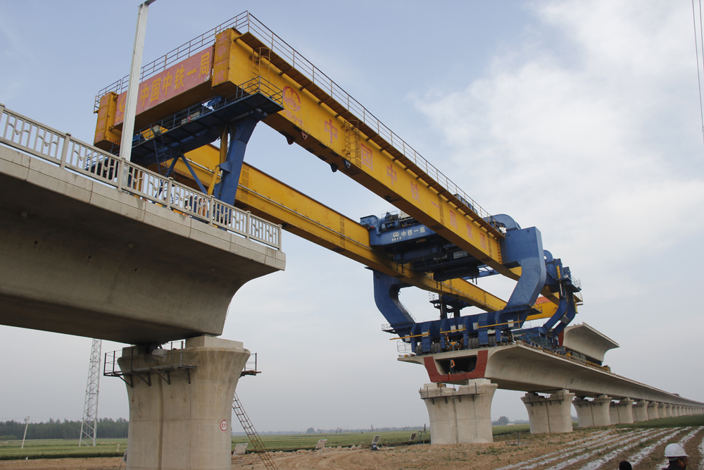 石济客专SJJL-7标共有2座特大桥,为平禹特大桥和禹齐特大桥,共有896孔箱梁架设任务,因架梁施工全线紧邻既有京沪高铁,安全风险高;线路长达32千米,运距长;京沪高铁专运繁多,平均每2天就有次停工,增加了时间的不确定性。为了确保架梁安全顺利完成,监理部同项目部多次完善优化架梁方案,于2014年11月7日开始架梁,2014年12月17日完成架桥机首次调头,2015年8月7日顺利完成济南方向205孔箱梁架设,2015年10月24日箱梁架设成功过半,2016年3月3日,架桥机经过小解体安全顺利通过禹城东站槽型梁,在架梁经过禹城东站后,针对24公里的运梁车长运距,采用“两运一架”、两班作业等举措,确保了箱梁架设的连续性。