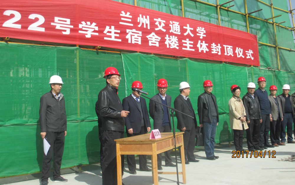 4月12日,由兰州总站监理的兰州交通大学22号学生宿舍楼举行封顶仪式。出席仪式的有兰州交通大学书记王萍、校长杨子江、副校长高云庆、基建规划处处长顾生杰、副处长李昌锋、国有资产处处长马维珍、公司总经理唐勇军等参建各方和学校领导。