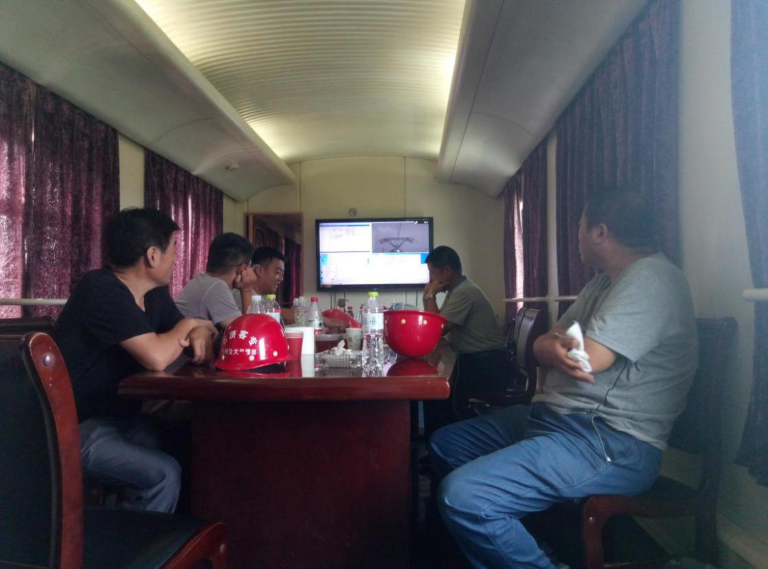 施工单位、监理单位、设备管理单位人员在检测车上观察检测试验情况