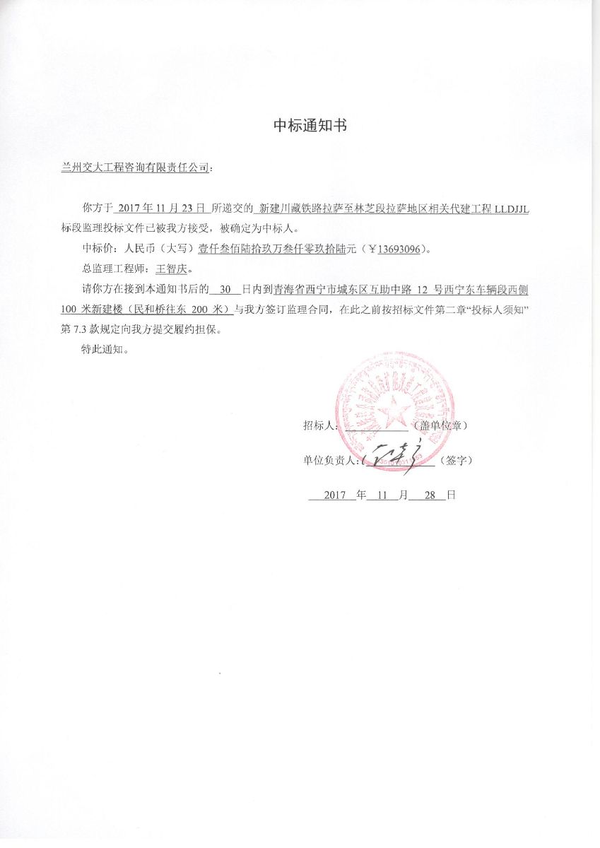公司成功中标新建川藏铁路拉萨至林芝段拉萨地区相关代建工程LLDJJL标段