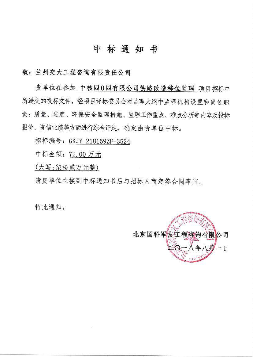 银川分公司成功中标中核四O四有限公司铁路改造移位监理项目