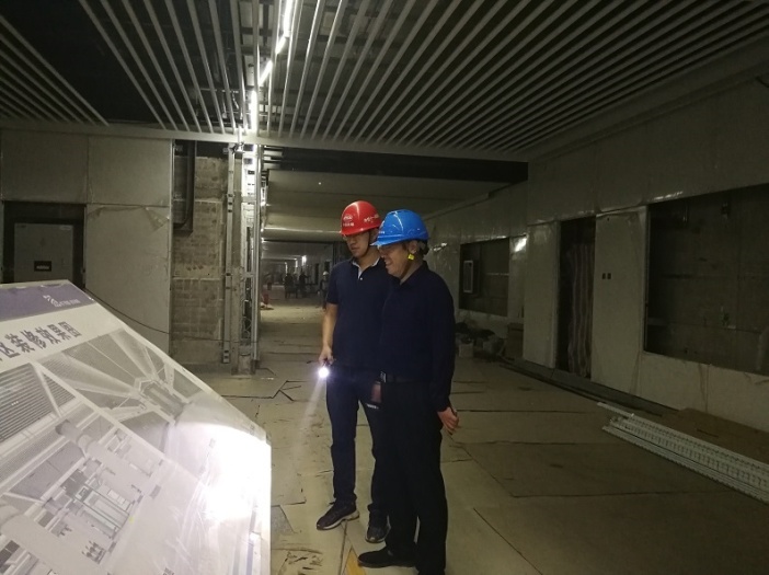 董事长在相关人员陪同下,巡视了南宁地铁3号线总部基地站设备间、站厅层、总部基地~市博物馆区间隧道,并对通信、信号、综合监控等专业的弱电施工情况进行检查指导。