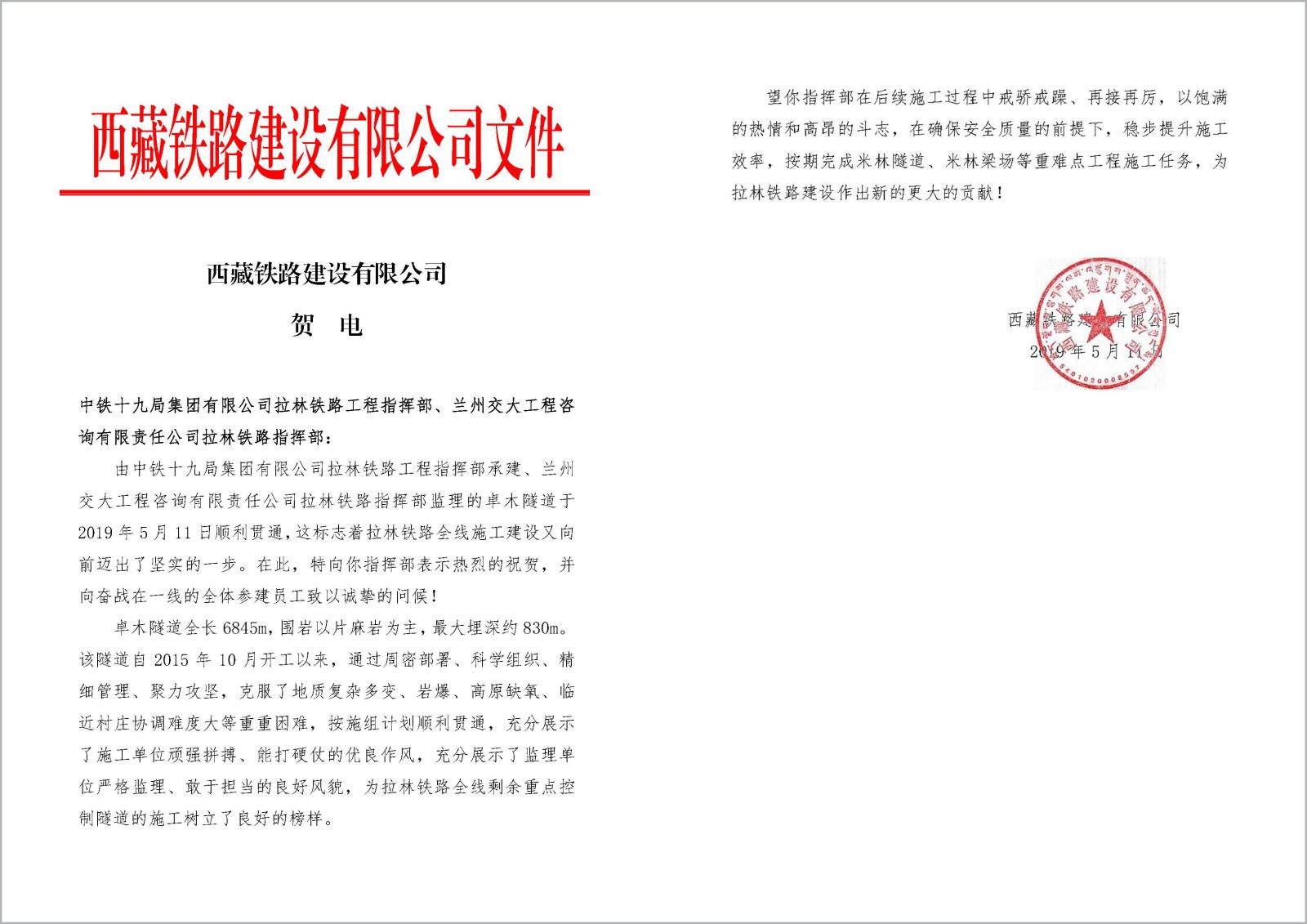 卓木隧道的贯通为全体监理人员树立了信心,并得到了西藏铁路建设有限公司奖励与祝贺。指挥部将以此为契机,再接再厉,继续发扬攻坚克难,敢于担当的精神,全体监理人员将一心向前,严格监理,积极响应上级领导的安排,迎难而上,为企业发展做出新的贡献。