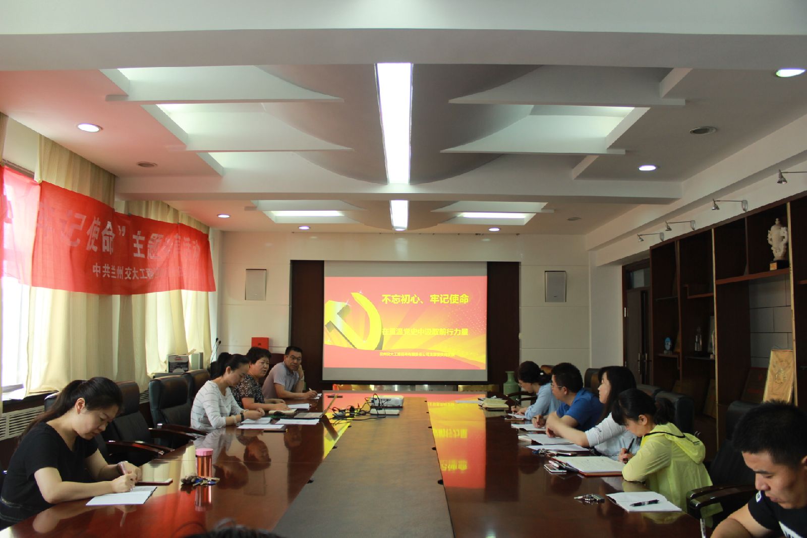 首先由党支部书记刘凤奎同志带领大家学习《习近平总书记在内蒙古考察并指导“不忘初心、牢记使命”主题教育工作会上的重要讲话》。其次由党支部委员问文侠通知传达国资委第二巡回指导小组“关于对主题教育近期一些工作的安排和说明”会议精神。接下来由党务工作者雷雨晴同志组织学习《关于转发〈中共甘肃省纪委办公厅关于认真学习贯彻落实习近平总书记重要批示精神深入落实中央八项规定精神的通知〉的通知》。