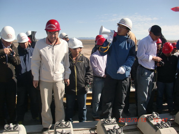 刘凤奎董事长首先对监理站今年以来的工作给予了充分肯定,他说:监理站管段地处极干旱荒漠地区,常年大风,夏季高温、冬季严寒,自然条件十分艰苦,但全体员工今年以来在监理站的坚强领导下,克服种种困难,严格履行职责,按照甘青公司和玉门指挥部的部署要求,积极投身“百日劳动竞赛”活动,坚持现场盯控,认真监督检查,确保了施工质量、安全、进度的有效控制,特别是无砟轨道施工开展以来,监理站在采取多项措施,强化现场质量控制的同时,督促要求施工单位在严格按照“机械化、精细化、标准化、程序化”施工,依靠科技攻关破解混凝土养护等多个难题,使管段无砟轨道施工成为全线的“样板示范”,做了大量的工作,付出了艰辛与努力,得到甘青公司和玉门指挥部的表扬。成绩来之不易,希望监理站全体员工再接再厉,保持不懈怠、不松劲和连续作战的作风,把后续的监理工作做得更好。