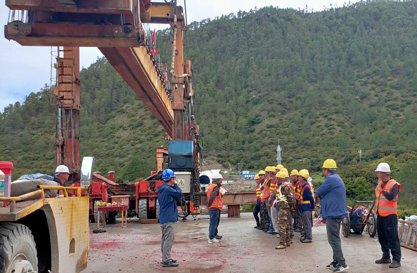 清晨7点,随着一声声爆竹燃放的声响,川藏铁路拉林线LLJL-11标管段小里程架梁开始,8点50分第一片梁安全就位,拉开了我标段运架梁序幕。