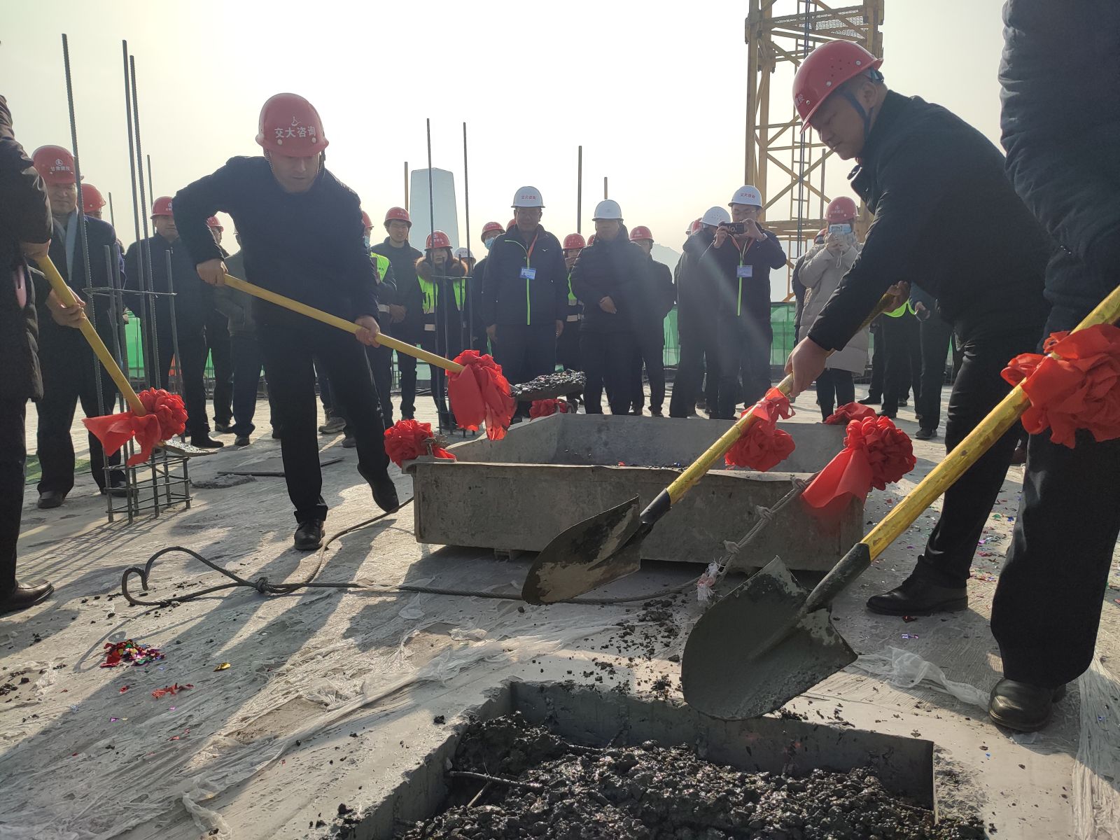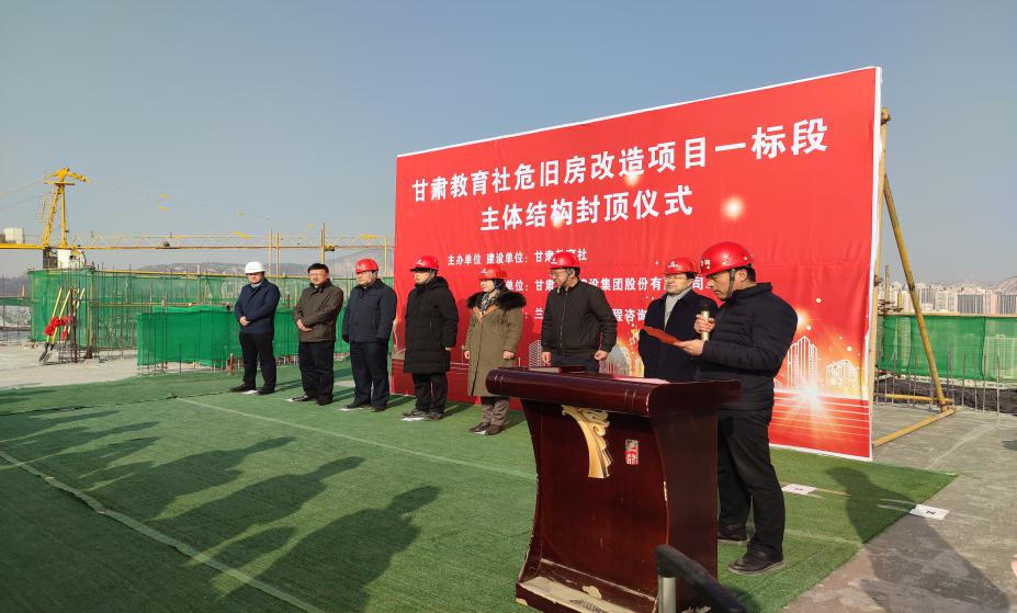 2020年12月9日上午,由我公司监理的甘肃教育社危旧房改造工程一标段主体工程顺利封顶。甘肃省教育厅厅长王海燕、副厅长王光亚等党委领导班子成员、公司副总经理白家风以及其它相关单位负责人共同受邀出席了封顶仪式。