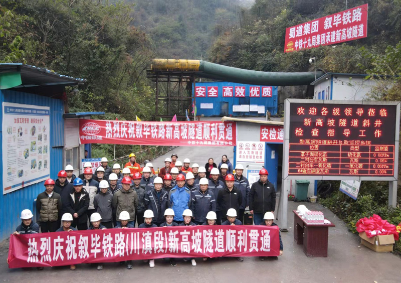 叙毕铁路新高坡隧道全长8100米(本标段全长3960米),最大埋深约445m,是叙毕四标唯一一座单线、双线、三线的高瓦斯隧道,分进口工区、斜井工区两个掌子面组织施工。在叙镇铁路公司的大力支持和帮助下,历时59个月,各参建单位克服地质条件复杂、围岩稳定性差、瓦斯溢出、有毒有害气体超限、软岩大变形、瓦斯管控安全风险高等困难,不断优化施工组织设计,严格落实各项高瓦斯隧道安全管理制度,在保安全保质量的基础上,实现了新高坡隧道的安全顺利贯通,为叙毕铁路早日实现全线通车奠定了坚实的基础。