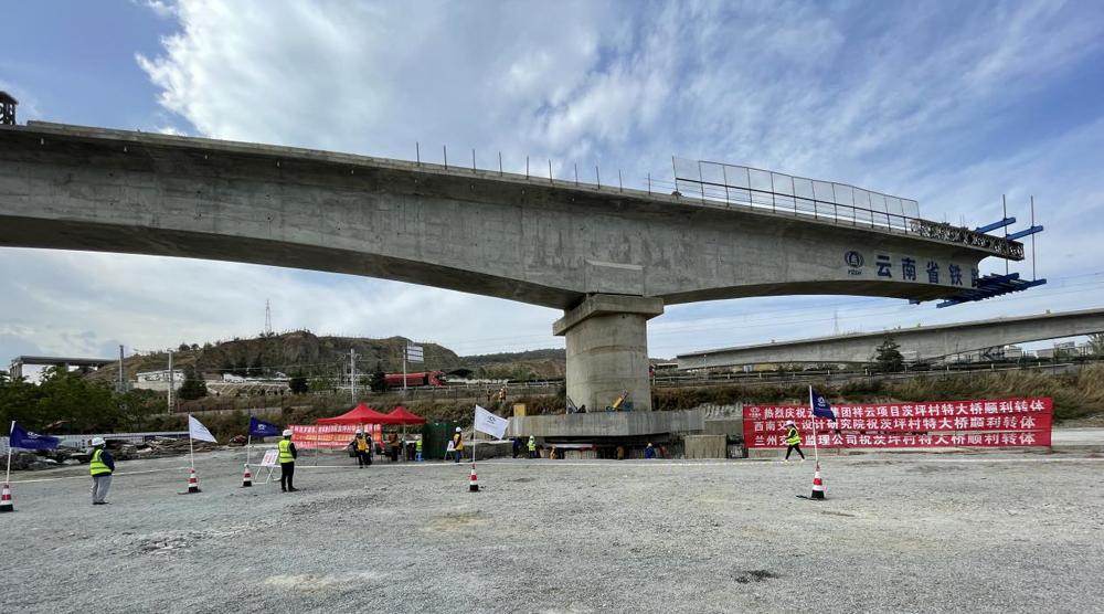 2022年4月13日18:45分,由我公司监理的祥云财富工业园区新建铁路专用线茨坪村特大桥20#墩上跨既有广大铁路侧转体施工在封锁计划期间顺利转体就位成功,为4月18日茨坪村特大桥21#墩上跨楚大高速公路侧转体合拢创造了有利条件。