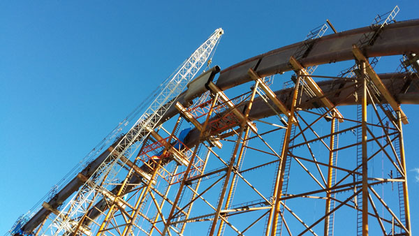 该桥技术含量高,工艺复杂,加之高原气候恶劣,施工难度较大。面对重重困难,我公司现场监理人员勇于担当,敢于破难,团结一心,艰苦奋战,突破了一个又一个技术难题,取得了一个又一个的阶段性胜利,顺利完成了主跨钢管拱的拼装及合拢任务。