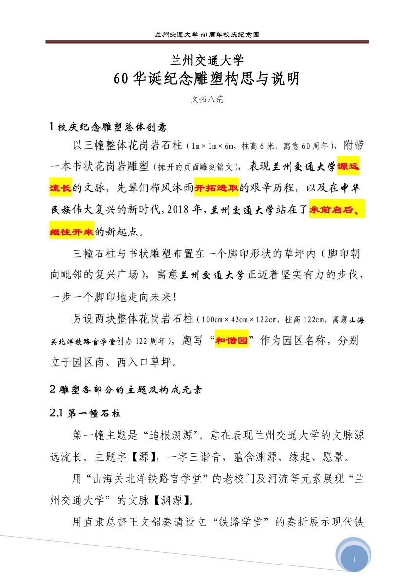 兰州交通大学60华诞纪念雕塑构思与说明