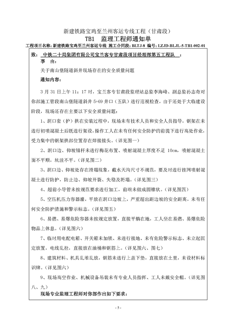 (6)监理通知单编号:LZJD-BLJL-5-TB1-XXX-序号,XXX代表每位监理人员胸牌号。